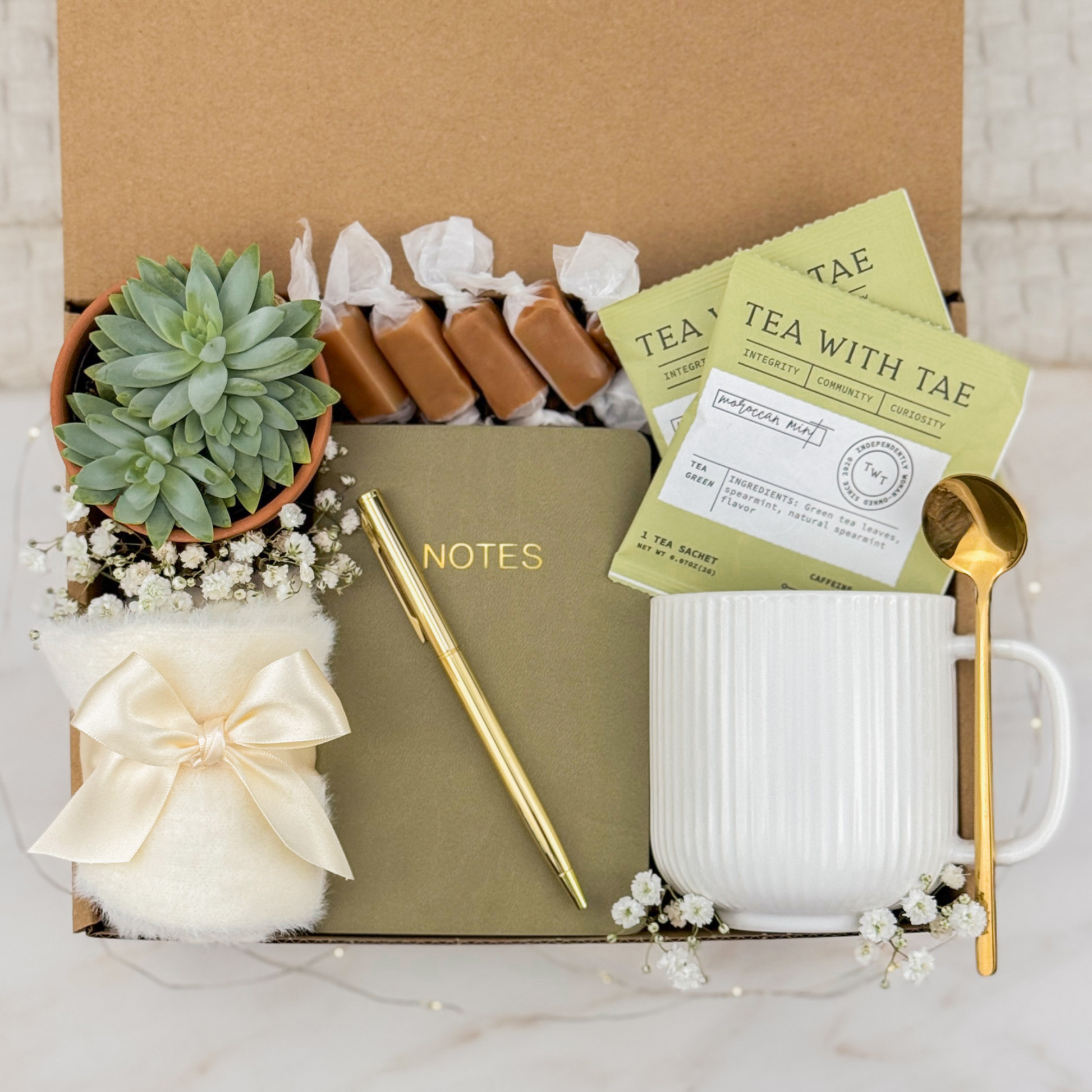 Photo props are for styling purposes only and are not part of the gift box